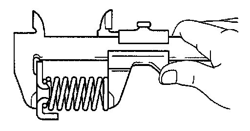 Using vernier calipers, measure the free length of the spring together with the spring seat.
