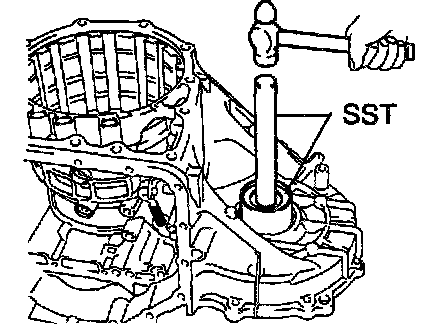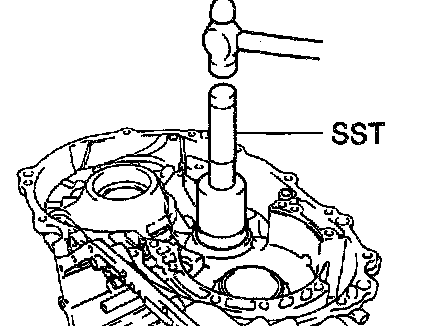 a. Using SST and a hammer, install the roller bearing into the transaxle case.