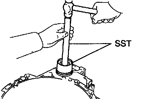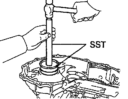 b. Using SST and a hammer, install a new bearing outer race.