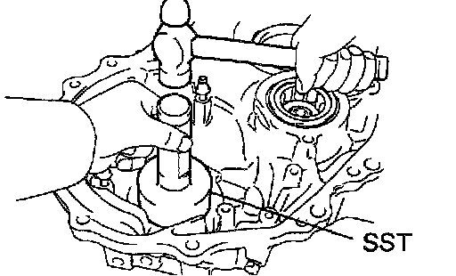 c. Using SST and a hammer, drive in a new oil seal.