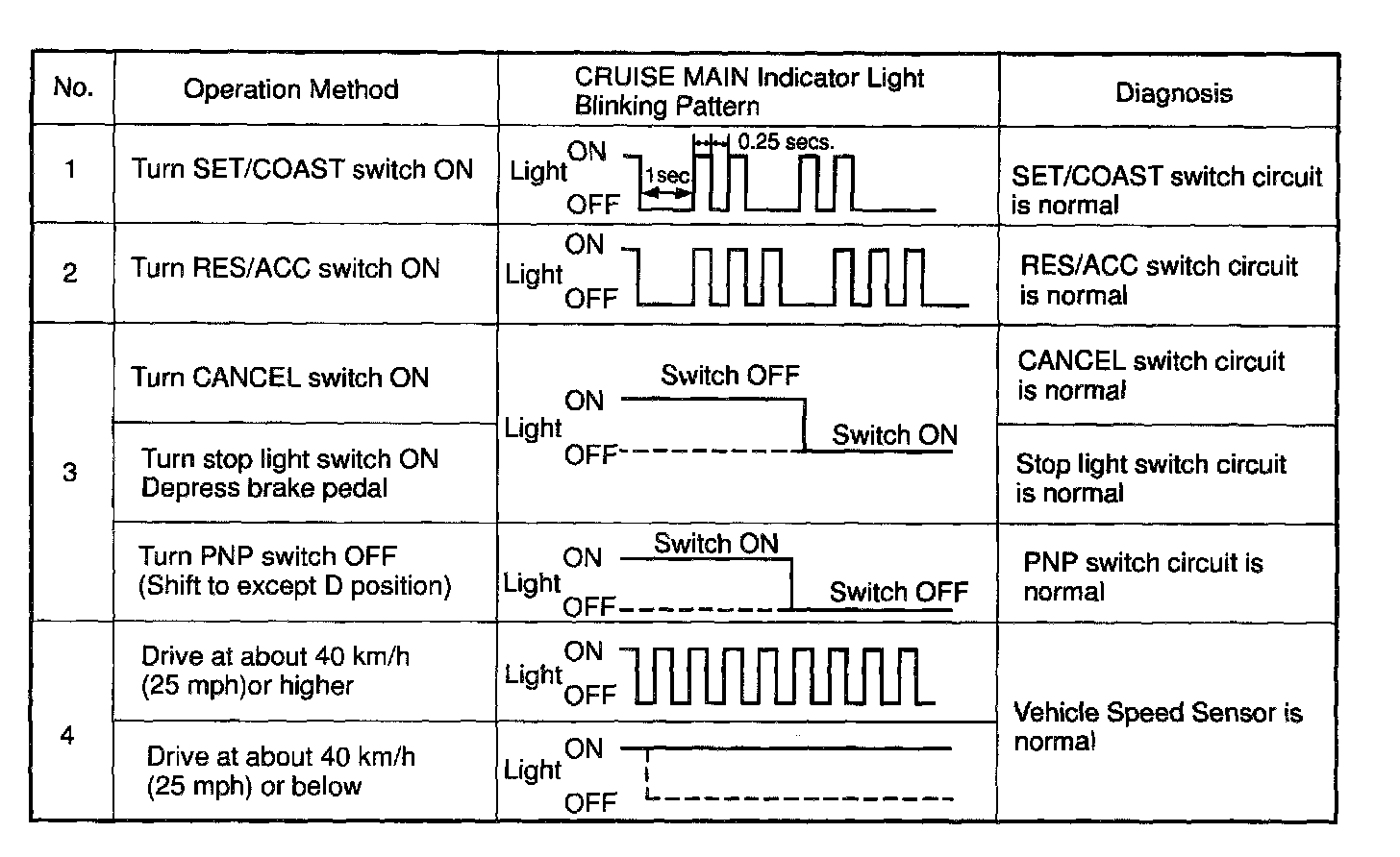 f. Read the blinking pattern of the CRUISE MAIN indicator light.