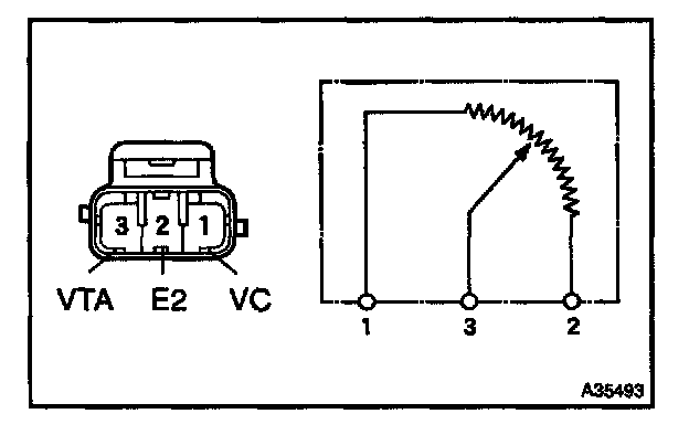 2. Using an ohmmeter, measure the resistance between terminals VC and E2.