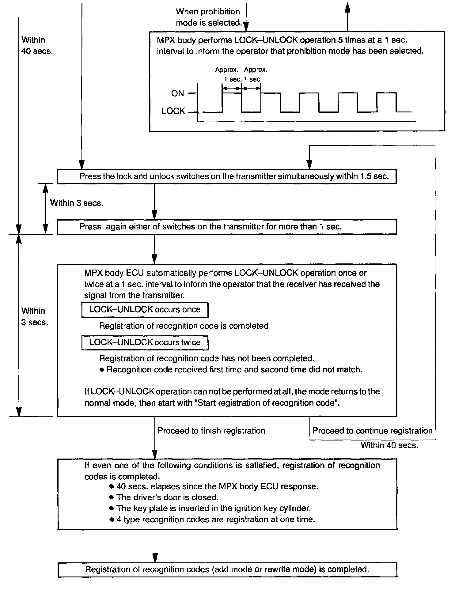 b. Follow the chart to register the transmitter recognition code at the wireless door lock control receiver.