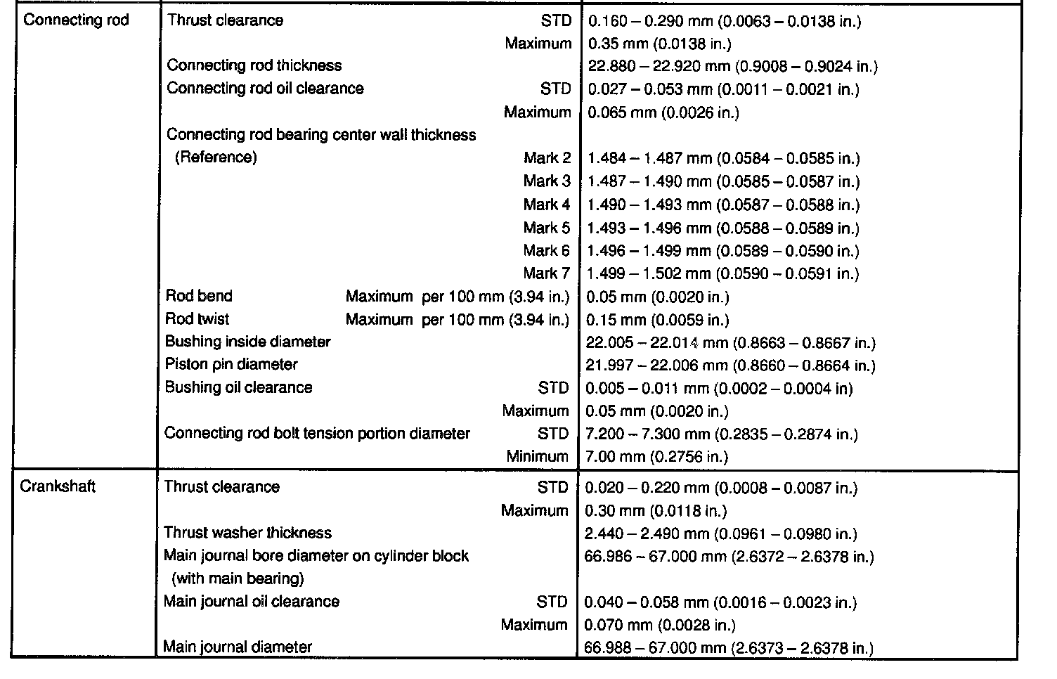 2UZ-FE Engine Mechanical Data: