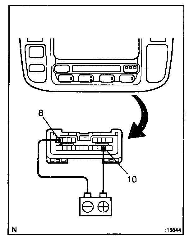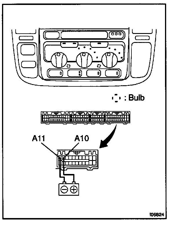 a. Connect the positive (+) lead from the battery to terminal A-10 and negative (-) lead to terminal A-11 then check that the illuminations lights up.