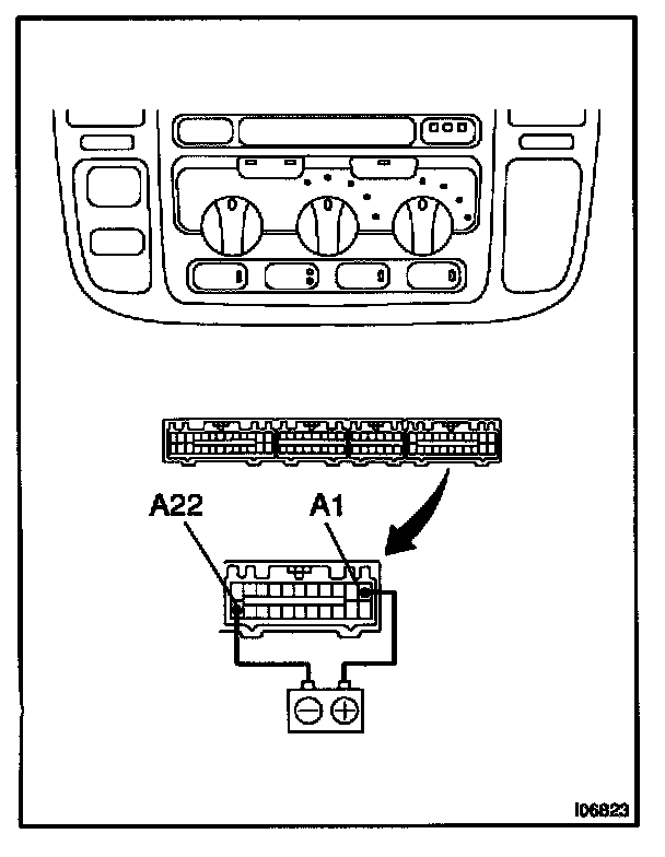 a. Connect the positive (+) lead from the battery to terminal A-1 and negative (-) lead to terminal A-22.