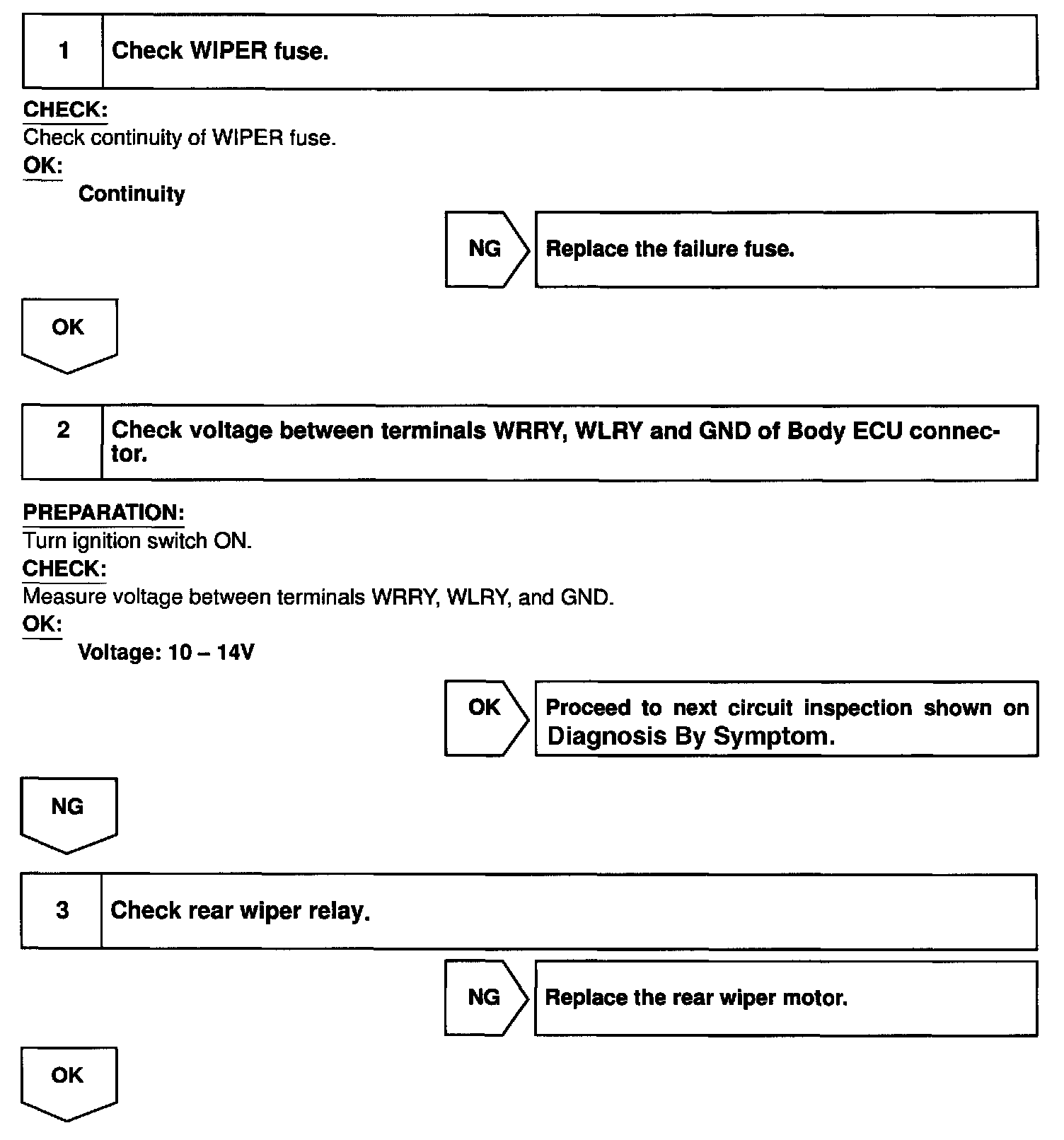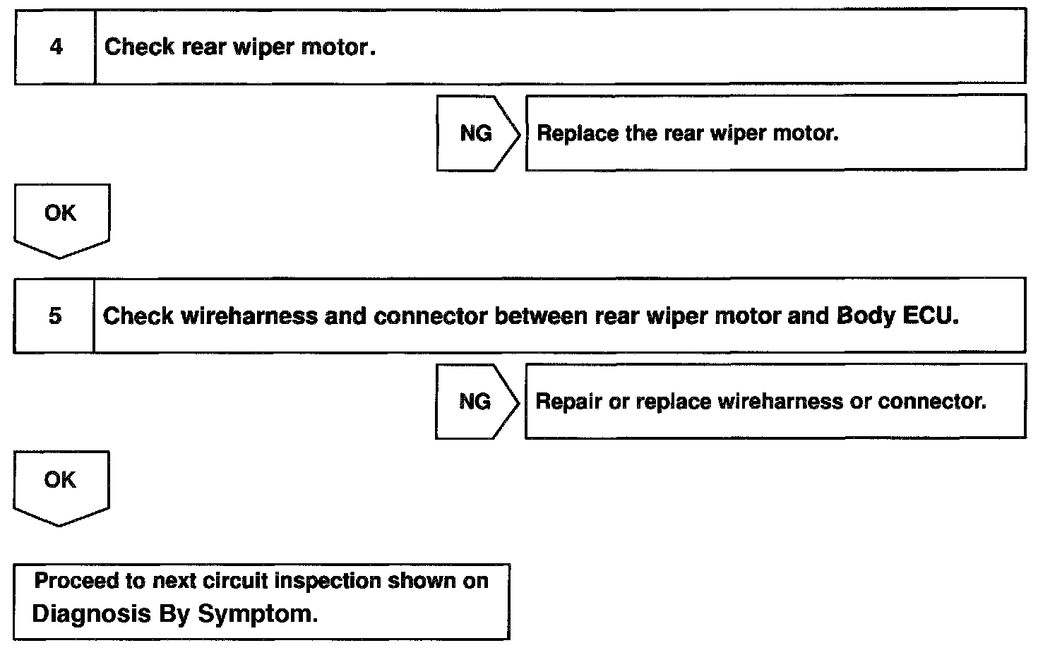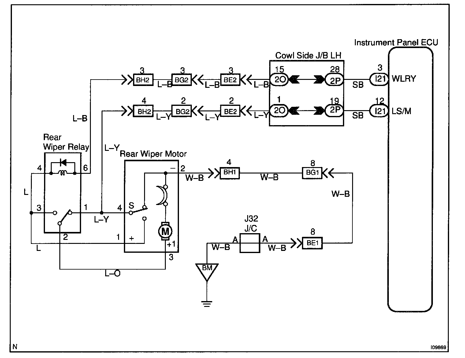 Wiper motor is controlled by the Body ECU. Even CPU is in the failure, its circuit structure enables to operate the wiper with "High" mode.