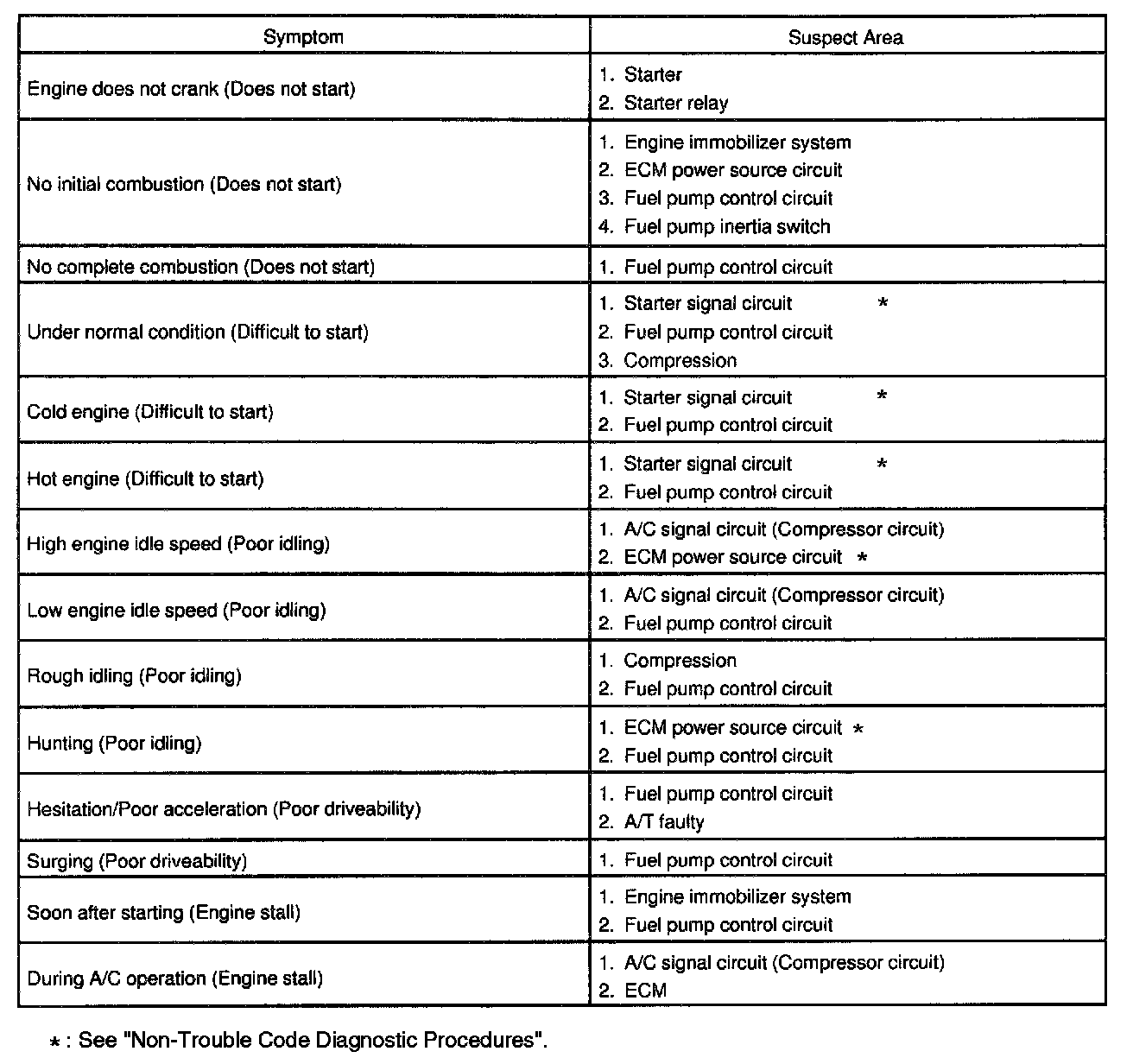 Problem Symptoms Table:
