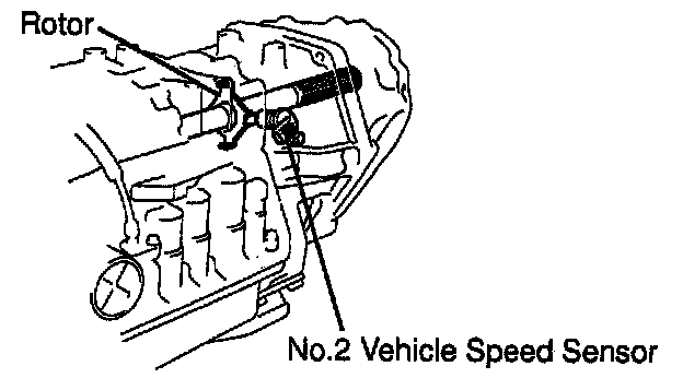 An AC voltage is generated in the No.2 vehicle speed sensor coil as the rotor mounted on the output shaft rotates, and this voltage is sent to the ECM.