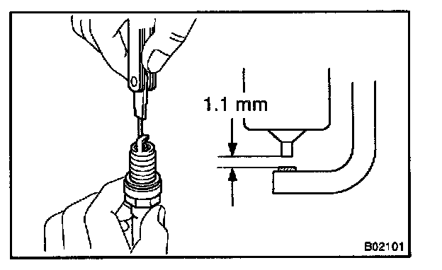 Correct electrode gap for new spark plug: 1.1 mm (0.043 in.)