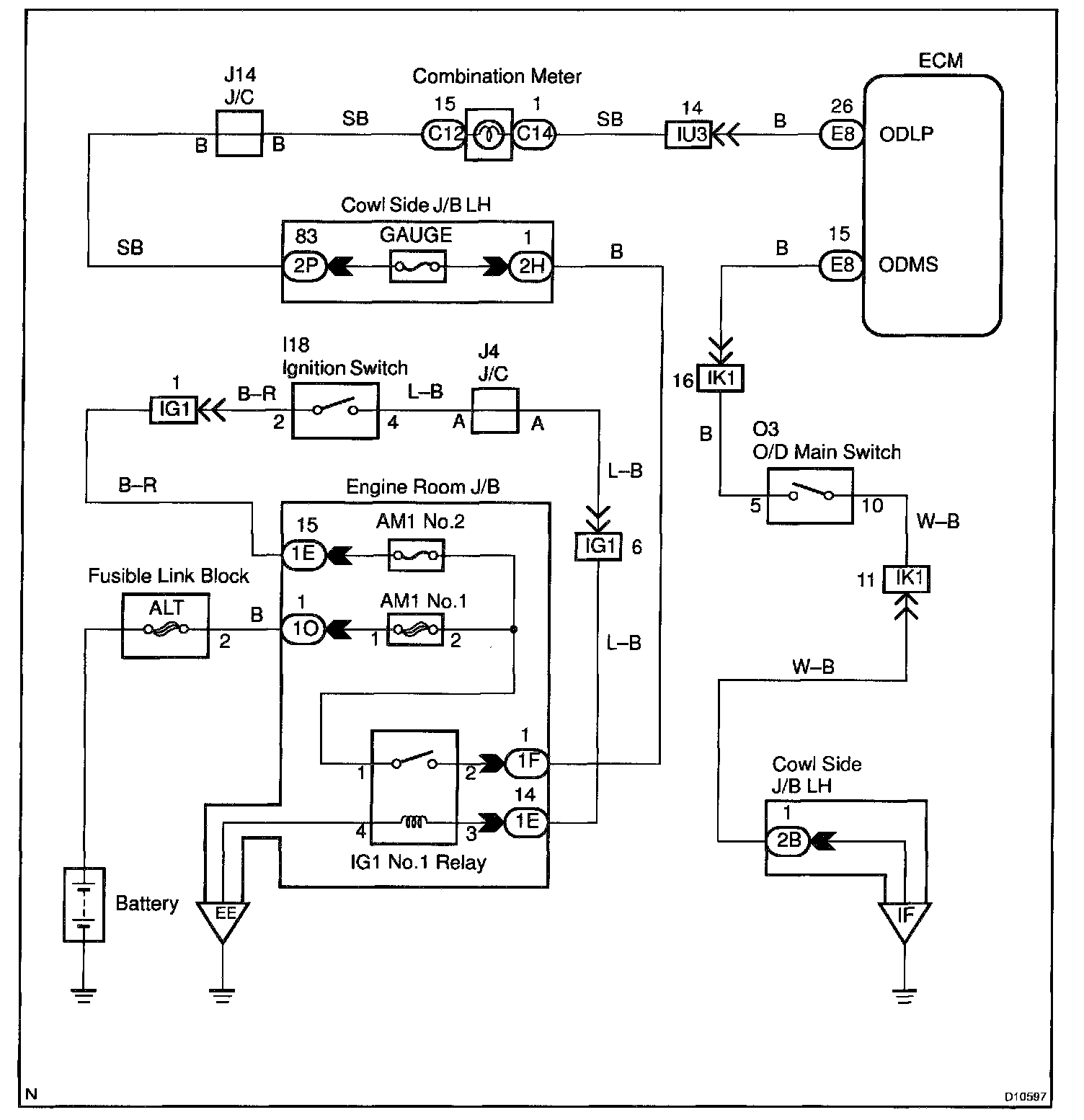 O/D Main Switch & O/D OFF Indicator Light CircuitCIRCUIT DESCRIPTION