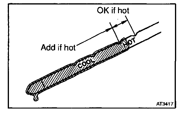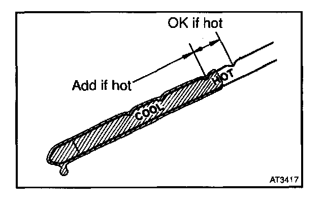 - Only use the COOL range on the dipstick as a rough reference when the fluid is replaced or the engine does not run.