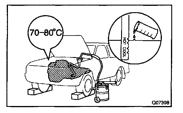 6. Check the fluid level at the normal operating temperature, 70 - 80 °C (158 - 176 °F), and add as necessary.