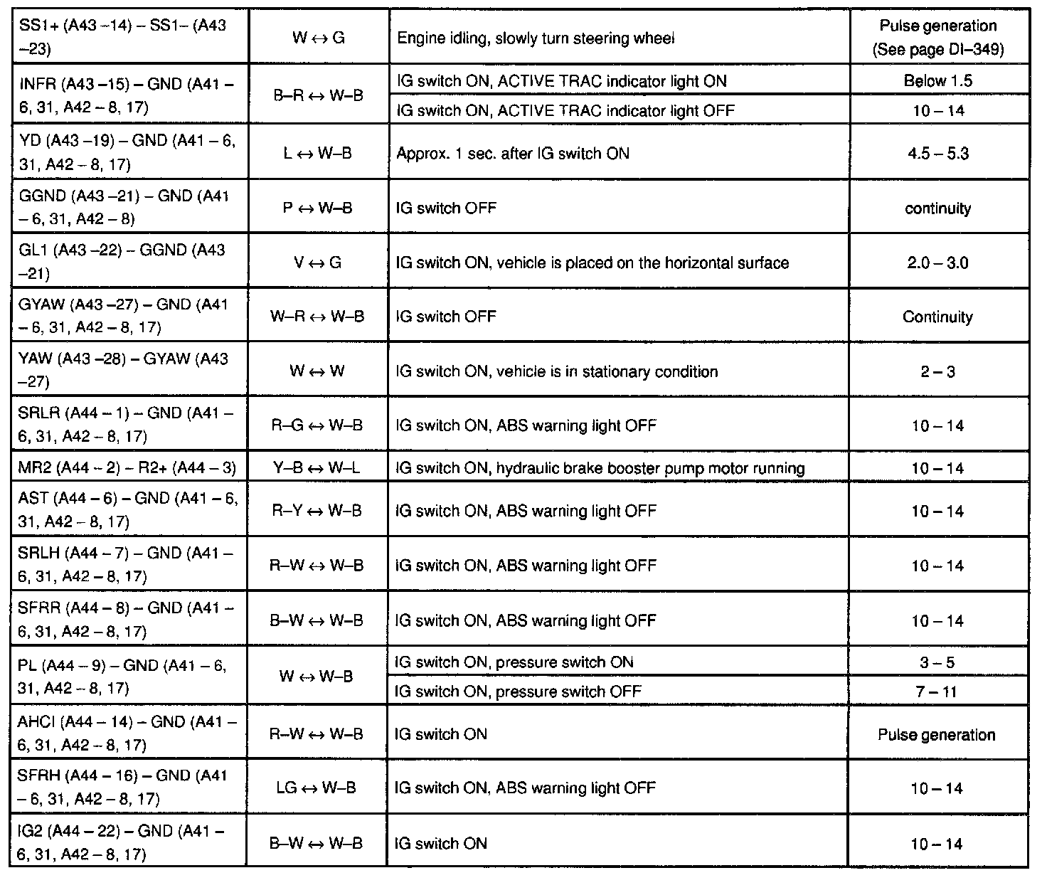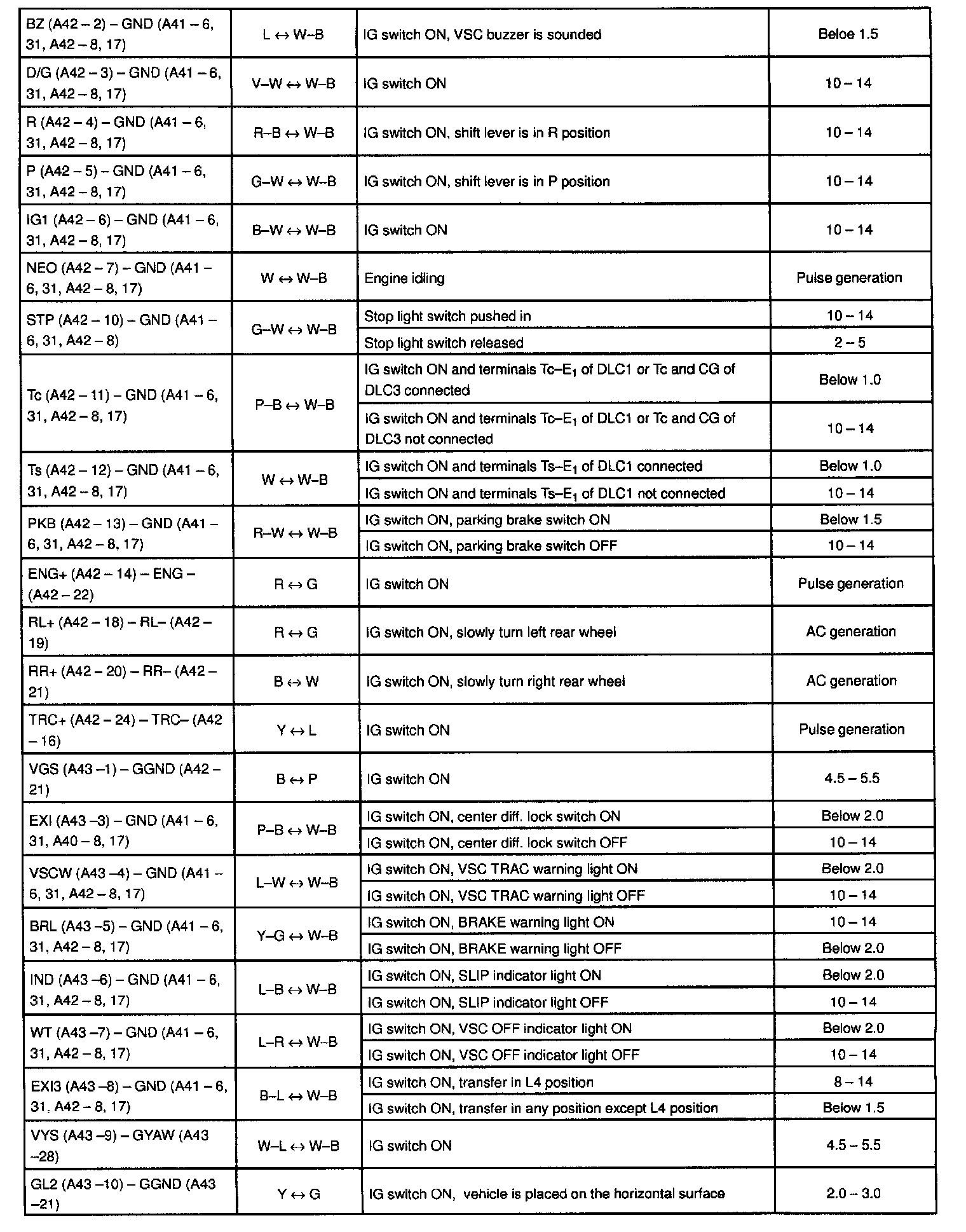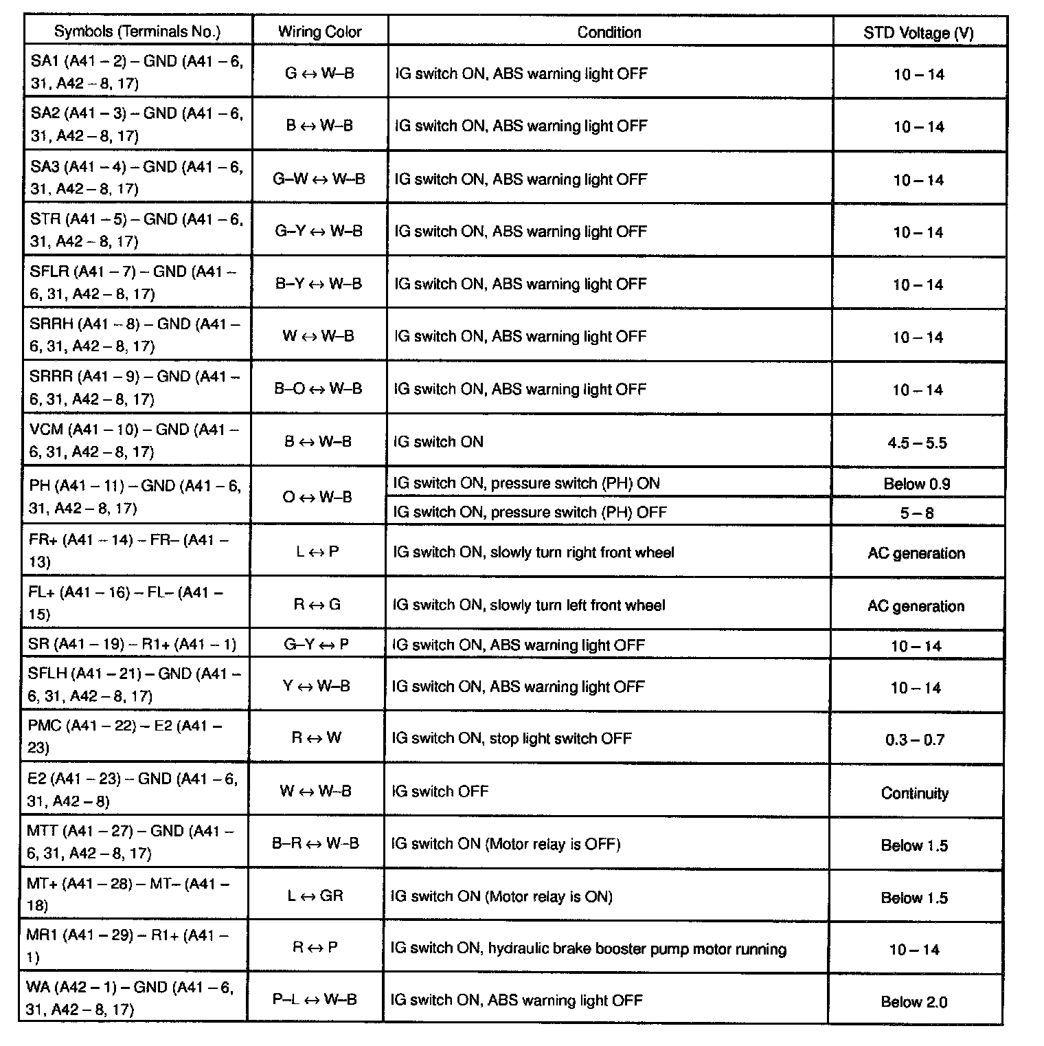 Standard Values of ECU Terminals