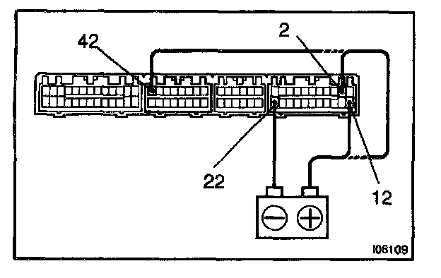a. Connect the positive (+) lead from the voltmeter to terminal 2, 12 and 42 of defogger switch connector and negative (-) lead to terminal 22.