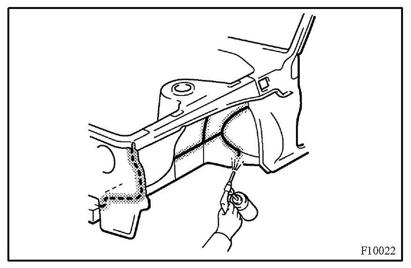 1. To prevent corrosion and protect the body from damage by flying stones, etc., apply anti-chipping paint to the rocker panel, wheel arch areas, valance panel, etc.