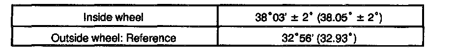 If the camber is not within the specified value, using the table, estimate how much additional camber adjustment will be required, and select the camber adjusting bolt.