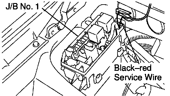 Connect the tester probe of a timing light to the black-red service wire in the J/B No. 1 as shown in the illustration.