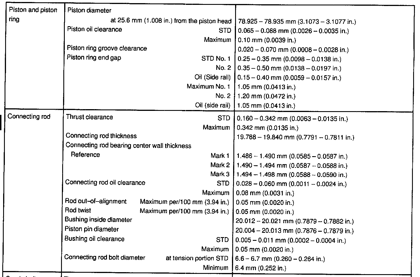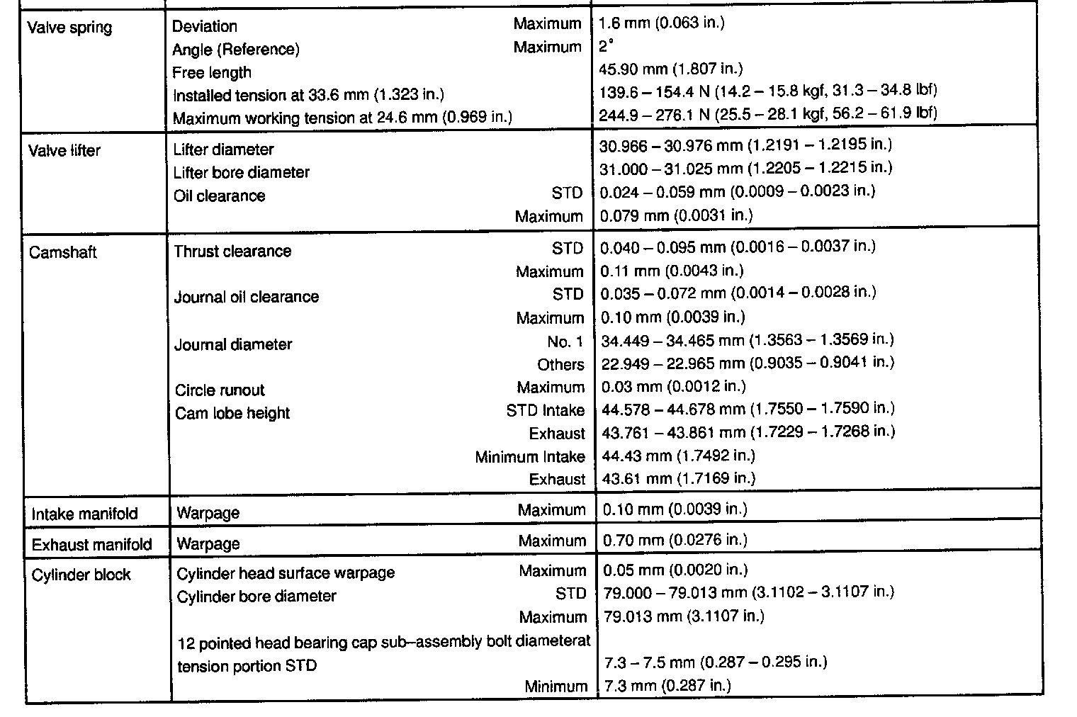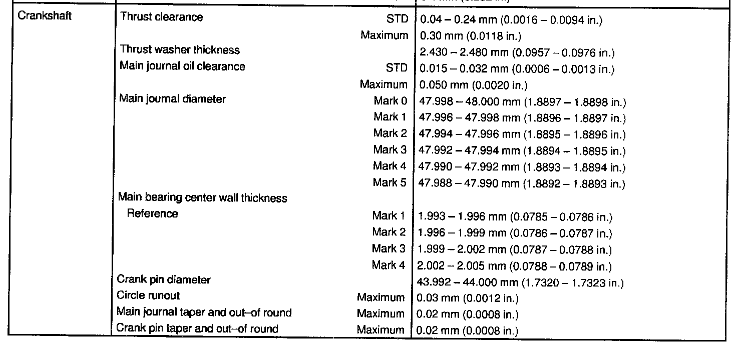 1ZZ-FE Engine Mechanical Data: