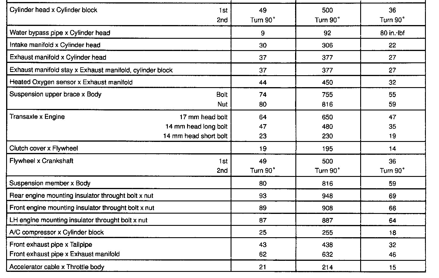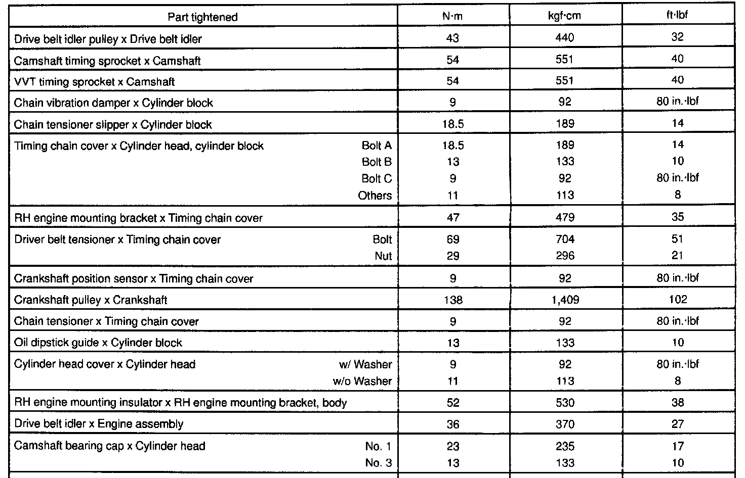 1ZZ-FE Engine Mechanical Torque: