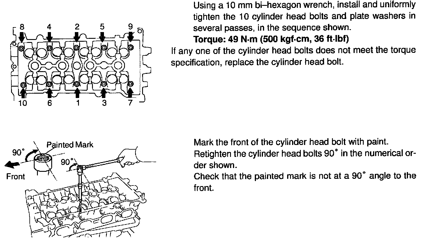 1ZZ-FE Cylinder Head Torque & Sequence:
