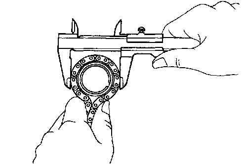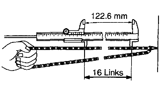 NOTICE: Vernier calipers must contact the chain rollers for measuring.