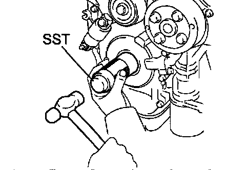 2. Using SST and a hammer, tap in a new oil seal until its surface is flush with the timing chain cover edge.