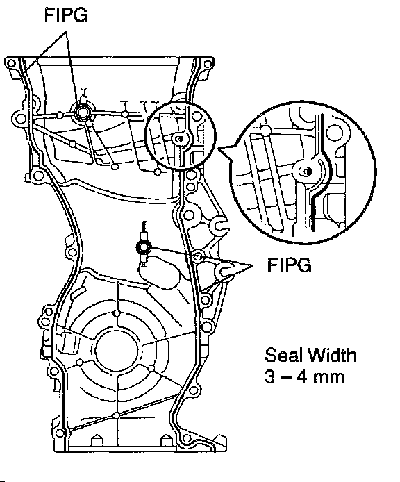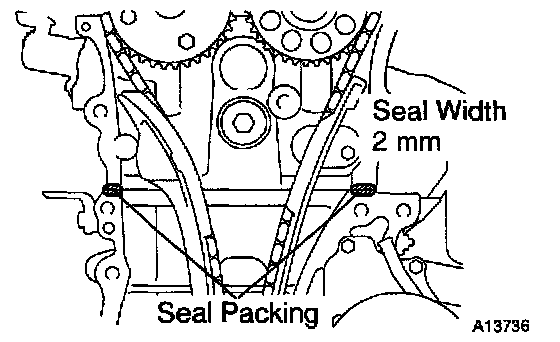 b. Apply seal packing to the timing chain cover as shown in the illustration.