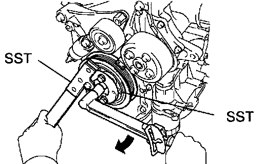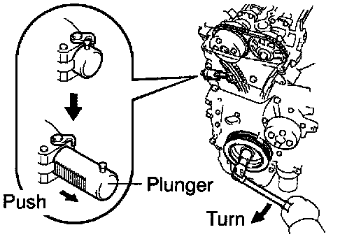 NOTICE: As the drive belt tensioner should be torqued together with the timing chain cover, so be sure install it with in 15 minutes after the timing chain cover is installed.