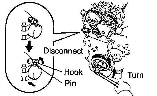 5. Check that the valve timing controller turns clockwise and that it is locked securely when the lock pin in hole is at the locking point.