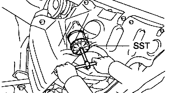 a. Using SST, remove the oil filter.