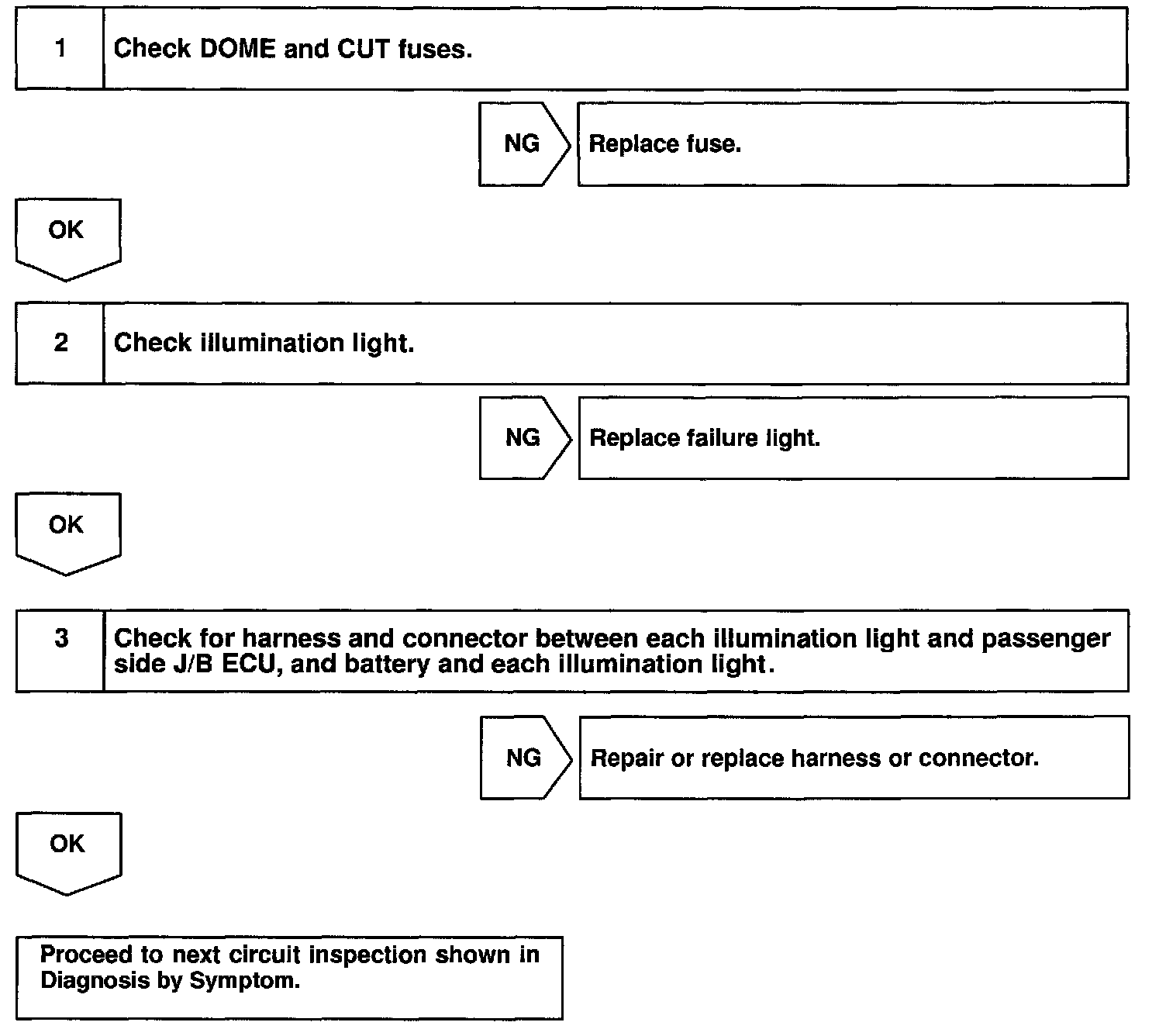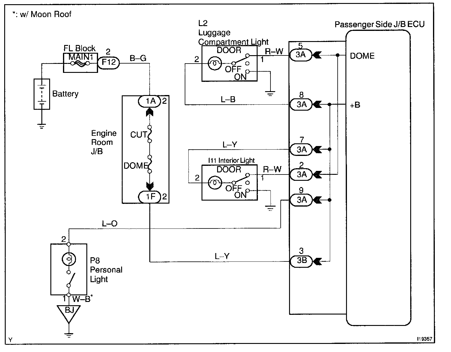 Receiving the courtesy signal from the passenger side J/B ECU will make the interior light, ignition light, and courtesy light