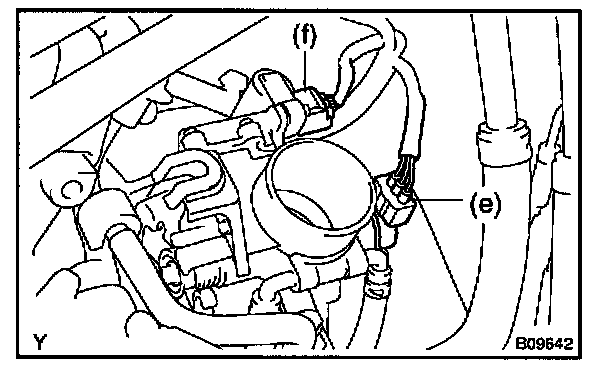 d. Connect the 2 water bypass hoses and vacuum hose to the throttle body.