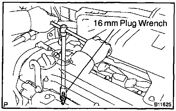 d. Using a 16 mm plug wrench, remove the spark plugs.