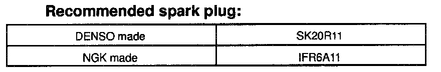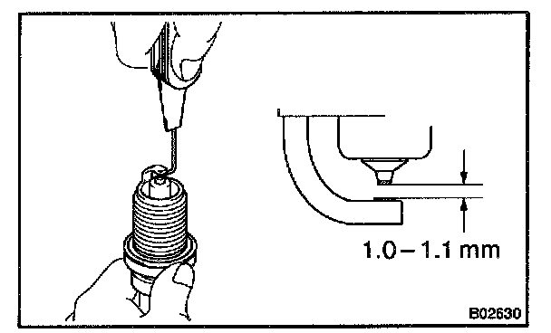 Correct electrode gap for new spark plug: 1.0 - 1.1 mm (0.039 - 0.043 in.)