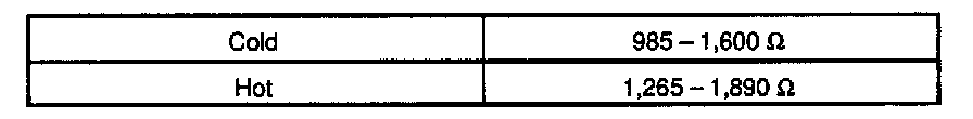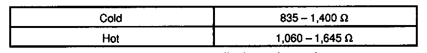 ON-VEHICLE INSPECTIONNOTE: "Cold" and "Hot" in these sentences express the temperature of the coils themselves. "Cold" is from -10 °C (14 °F) to 50 °C (122 °F) and "Hot" is from 50 °C (122 °F) to 100 °C (212 °F).