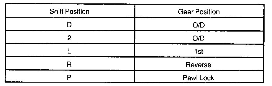 While driving, shift through the L, 2 and D positions. Check that the gear change corresponds to the shift position.