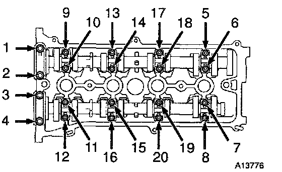 Camshaft Bearing Cap Bolt Removal Sequence: