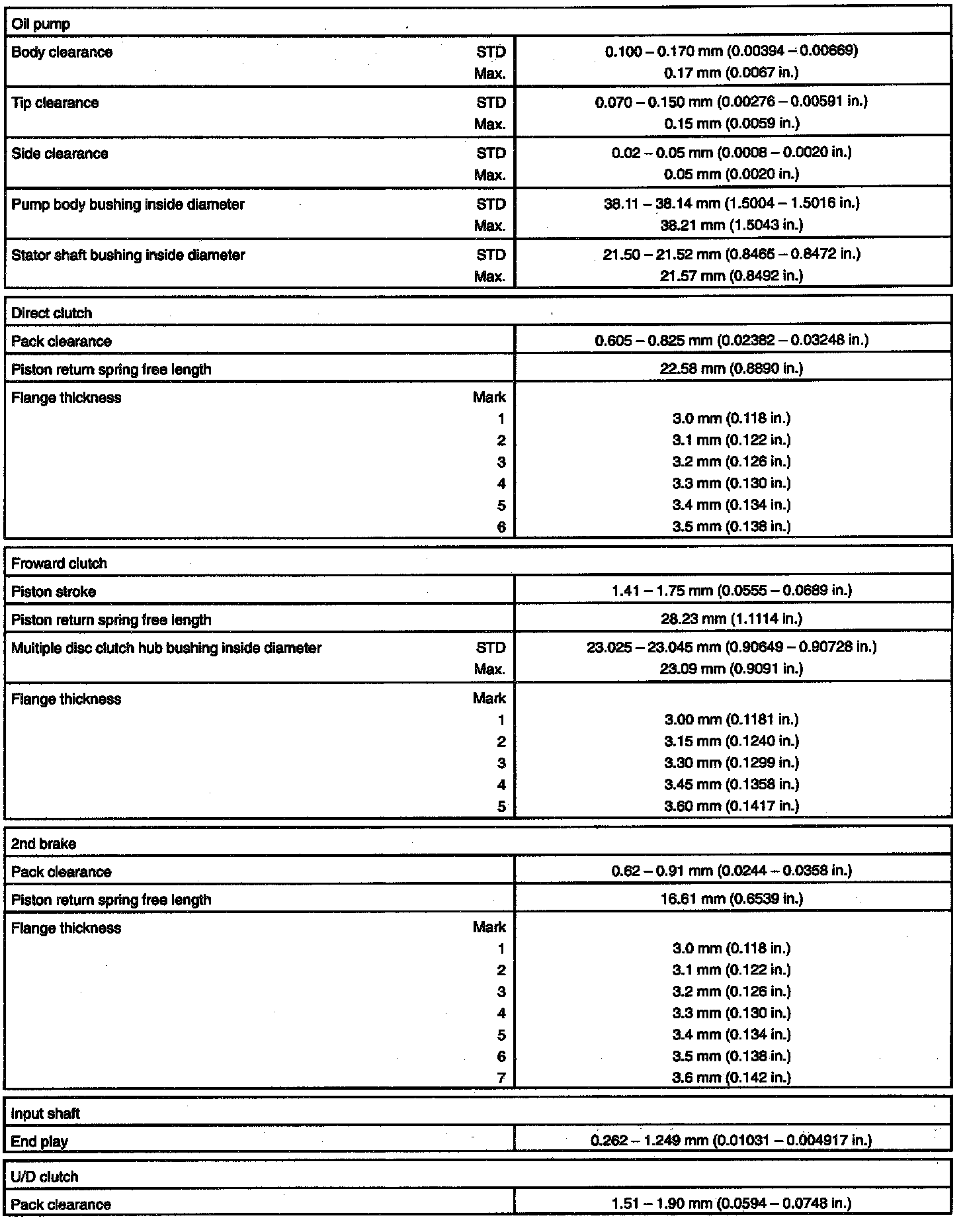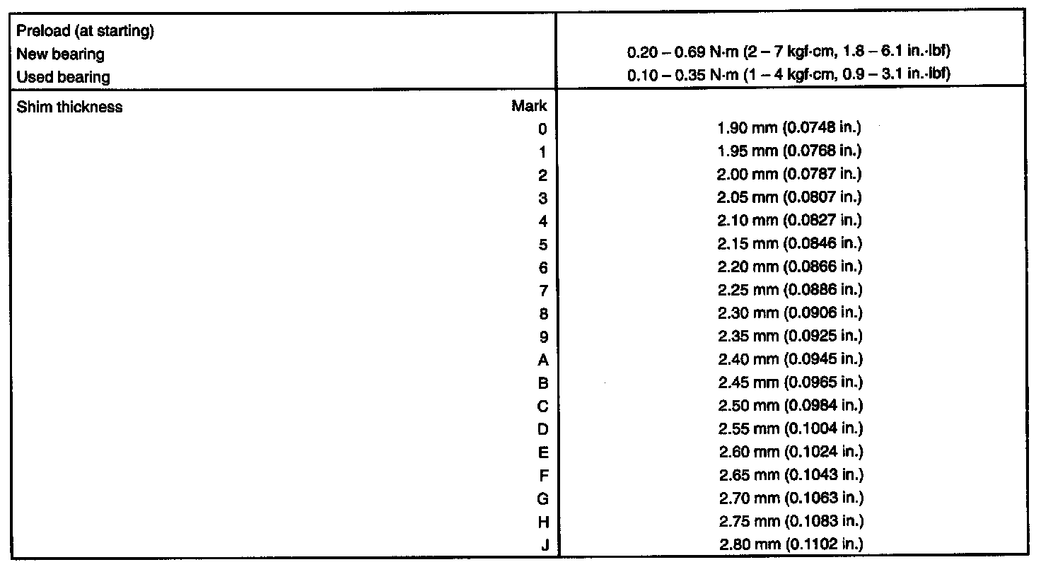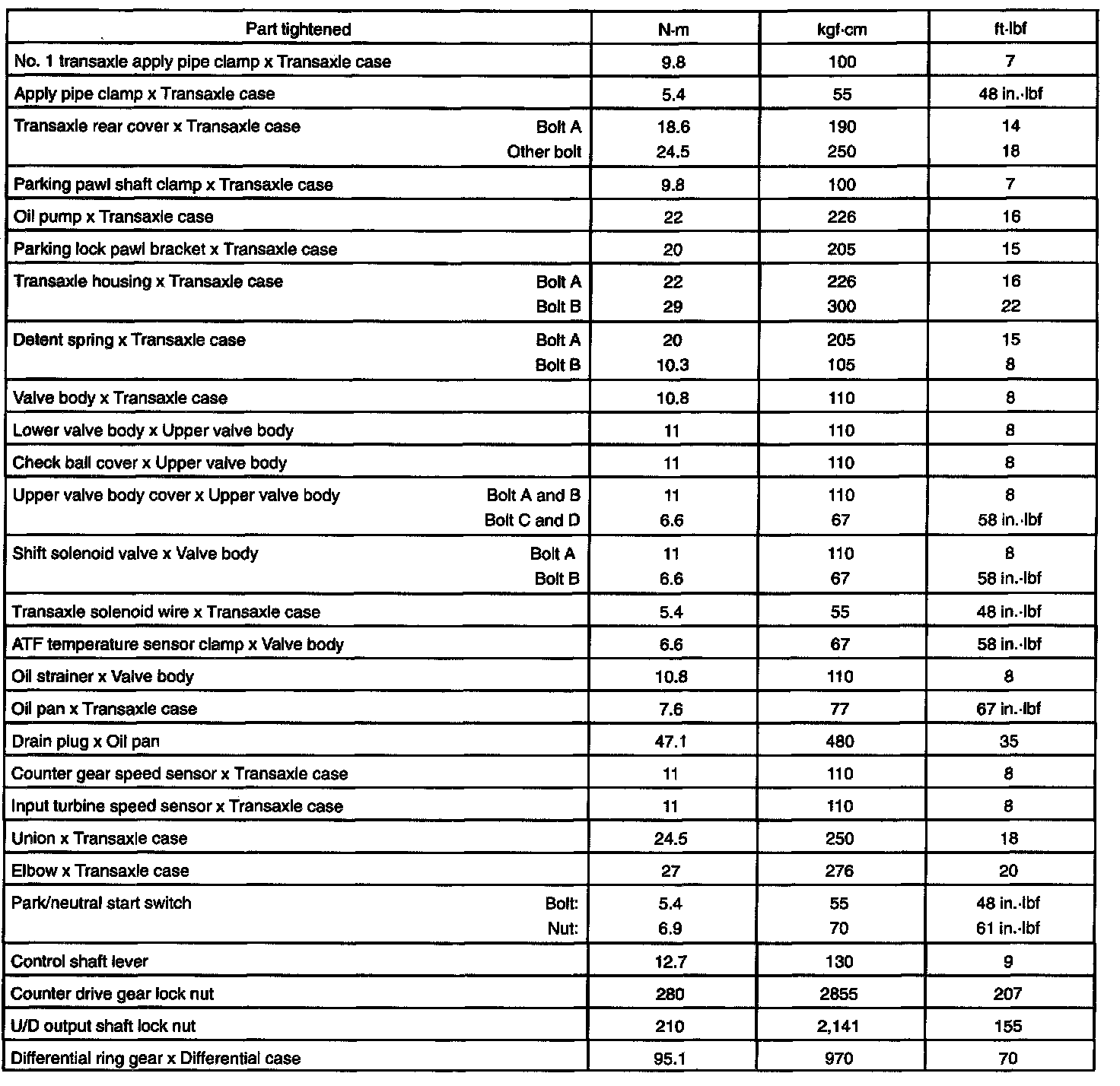 TORQUE SPECIFICATION