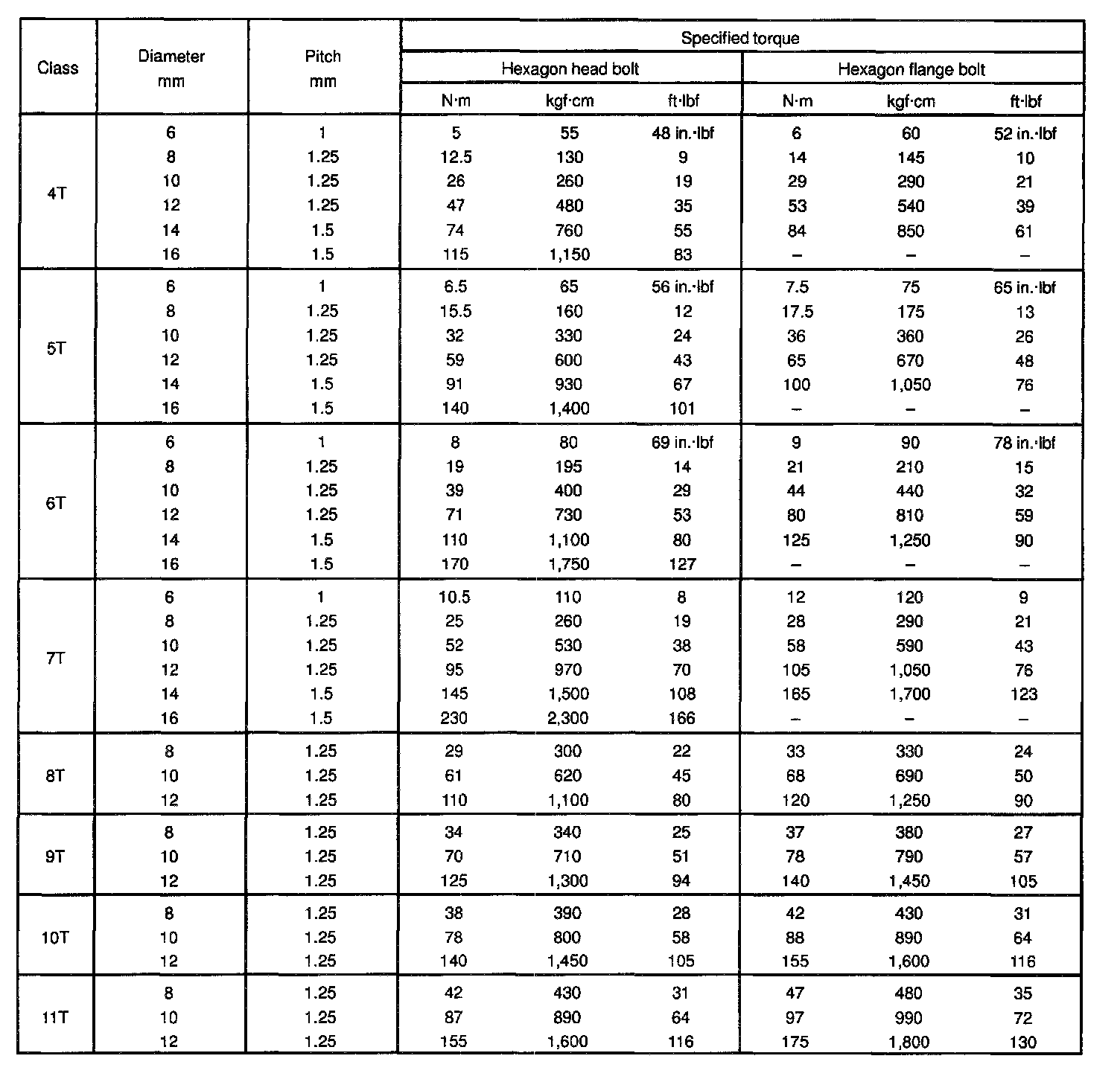 TORQUE SPECIFICATION
