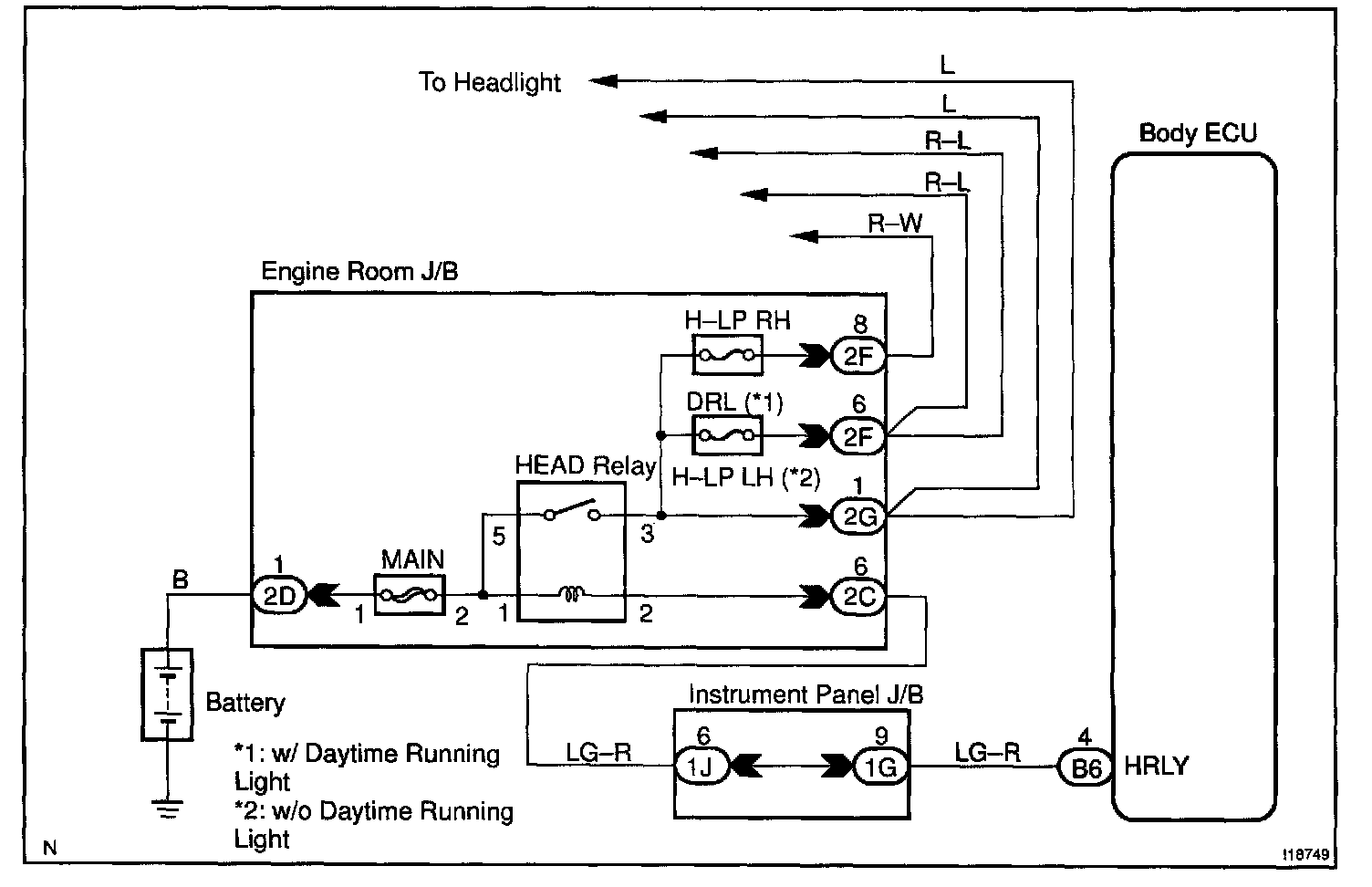 CIRCUIT DESCRIPTIONHead light relay will be "ON" by operating the headlight switch. The transistor which activates the headlight relay has two sorts: one activates directly by the headlight switch for fail safe and the other activates by CPU. the one that activates by CPU has two systems and prevents the headlight from turning off at the time of one system trouble in the automatic operation circuit.