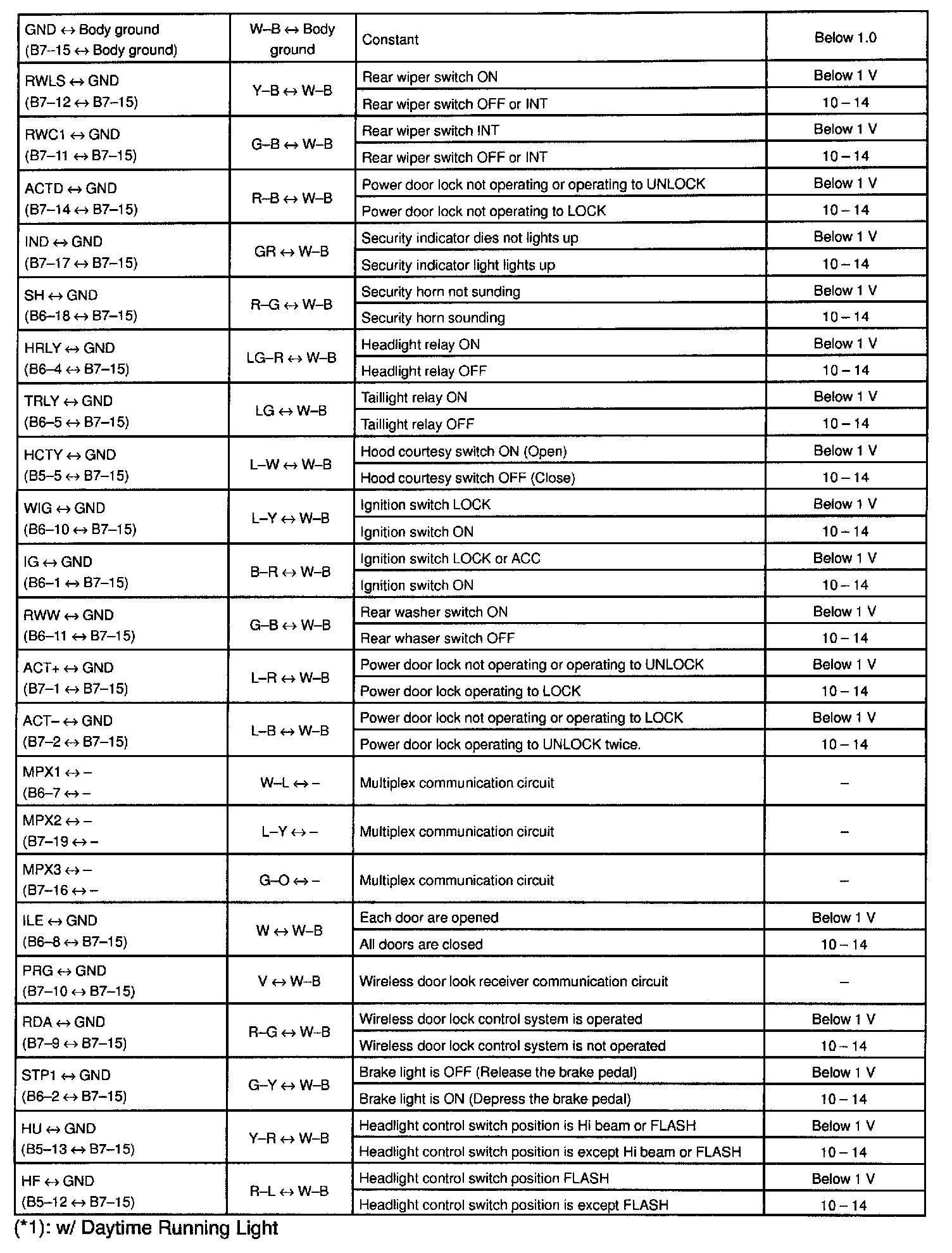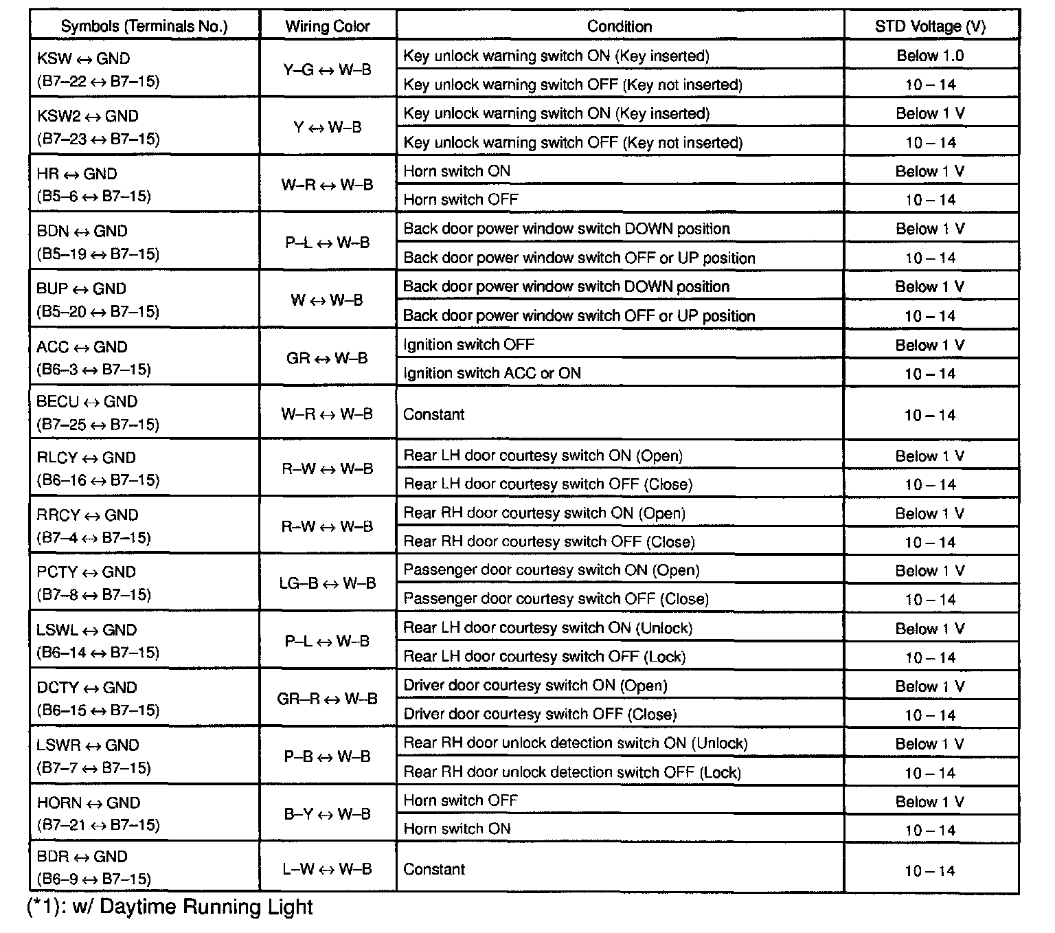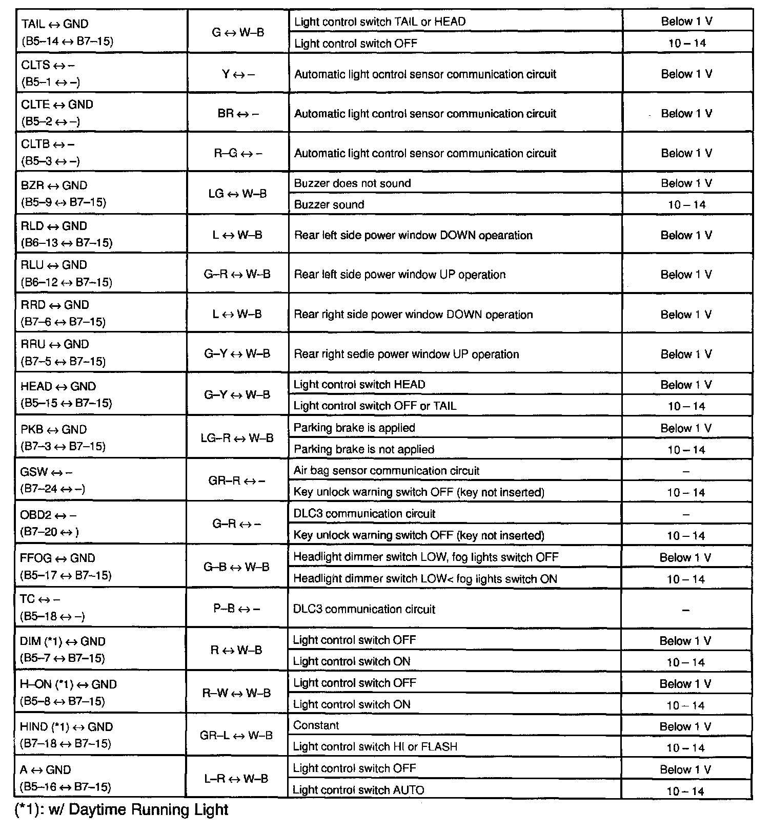 Pinout Values and Diagnostic Parameters