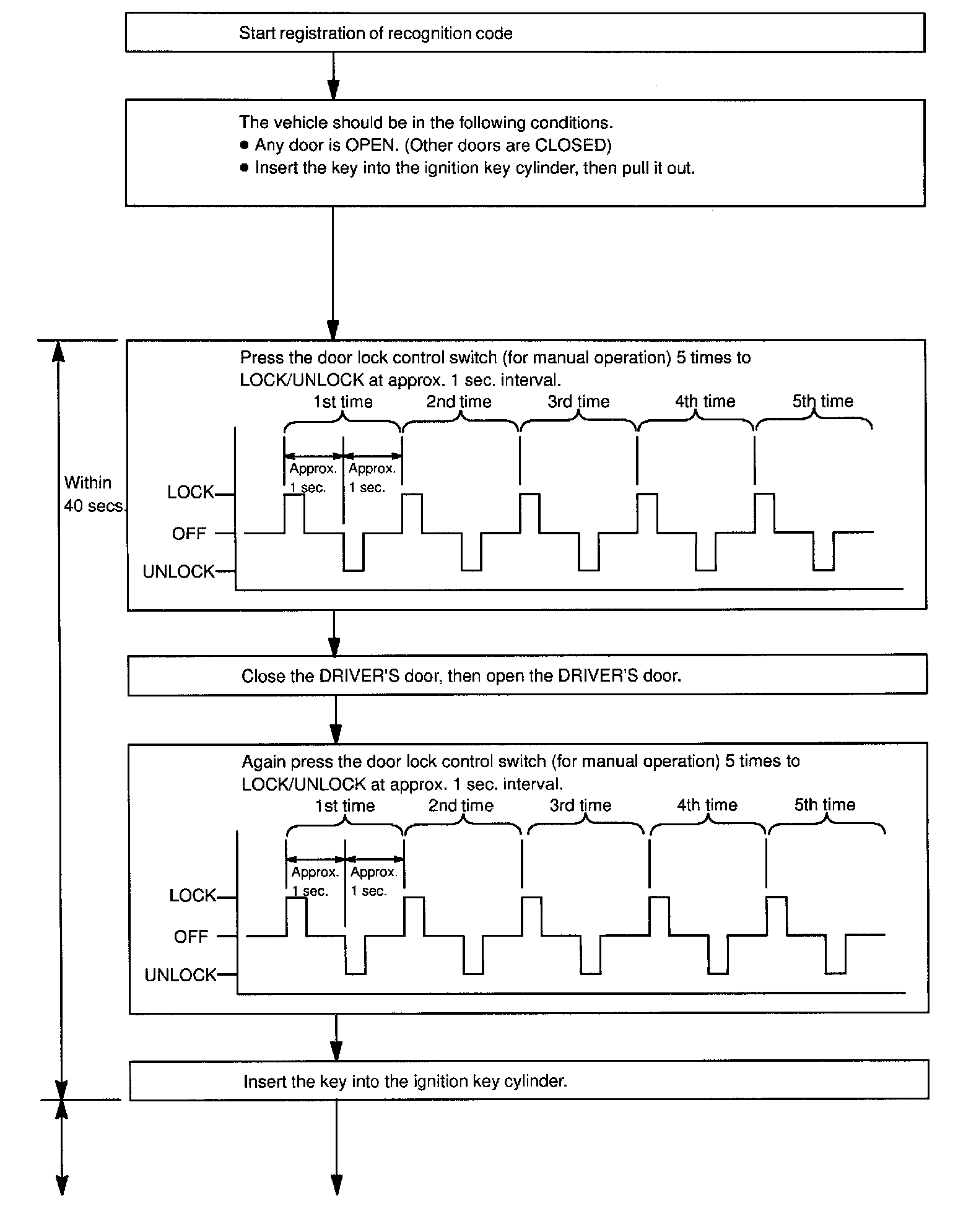 B. Follow the charts to register the transmitter recognition code at the wireless door lock control receiver.