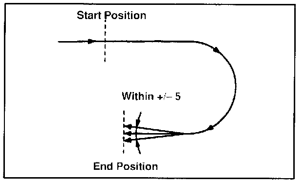 ^ When completing the U-turn, the ending position should be 180 degrees +/- 5 degrees of the starting position.