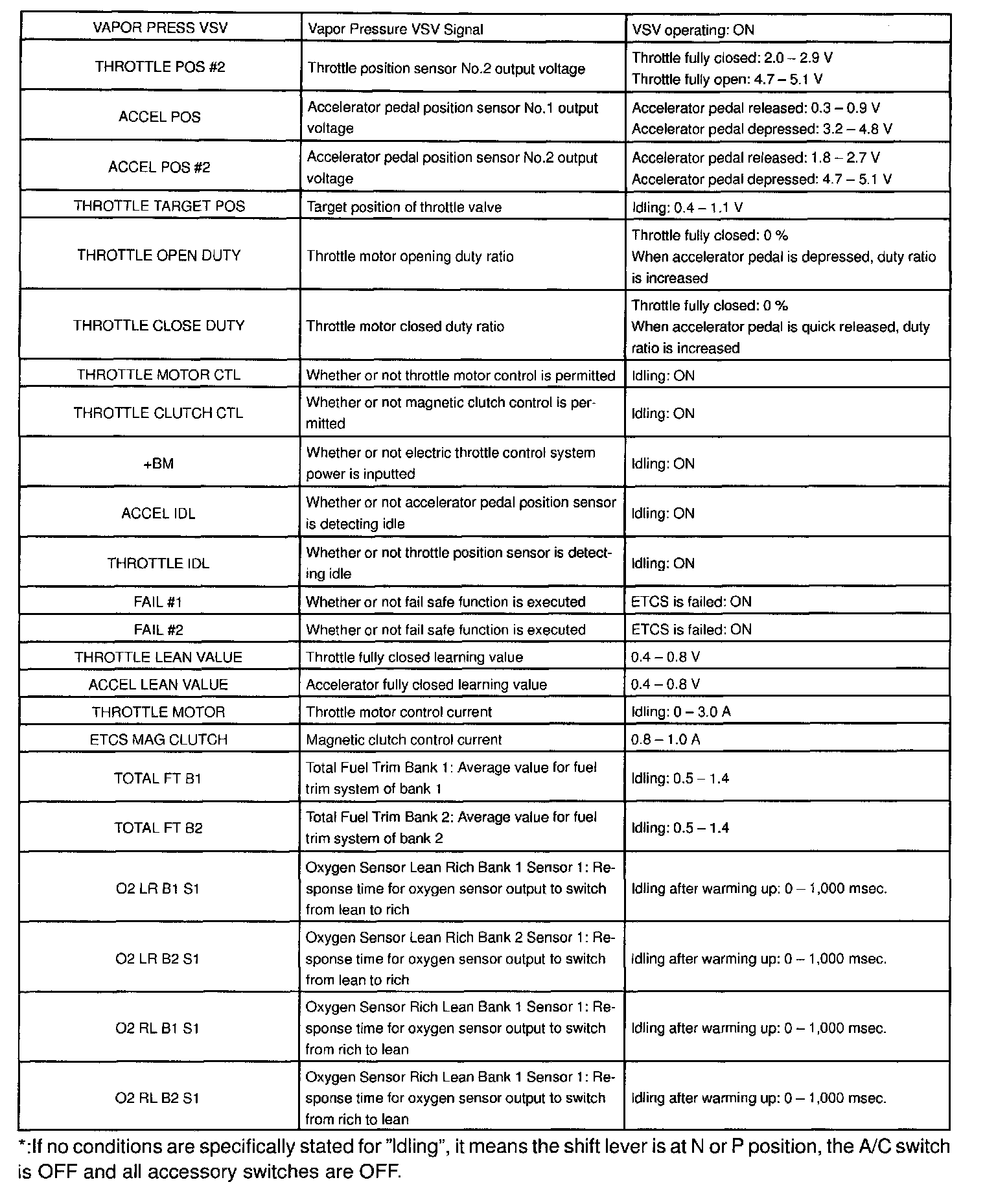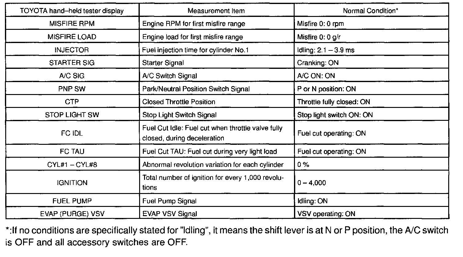 NORMAL ENGINE OPERATING CONDITIONCARB Mandated Signals: