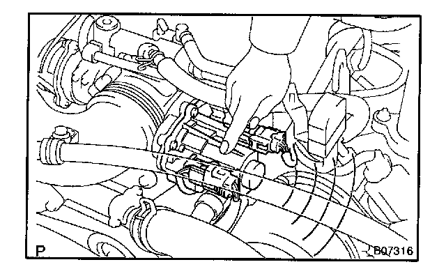 2. When turning the accelerator pedal position sensor lever, check the running sound of the motor. Also, check that there is no friction sound.
