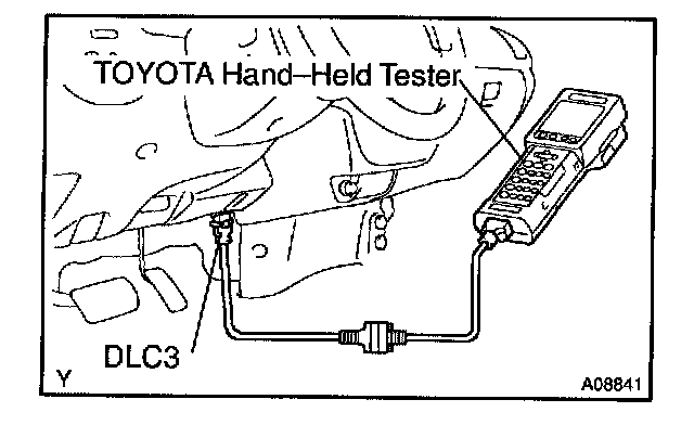 1. Connect the TOYOTA hand-held tester to the DLC3.