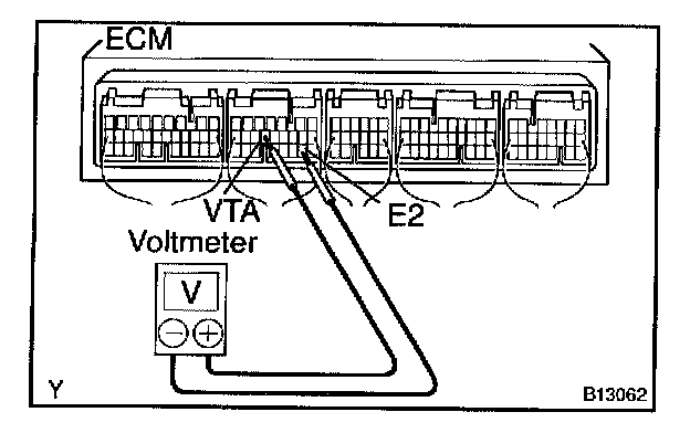 If you have no TOYOTA hand-held tester, measure voltage between terminals VTA and E2 of the ECM connector.