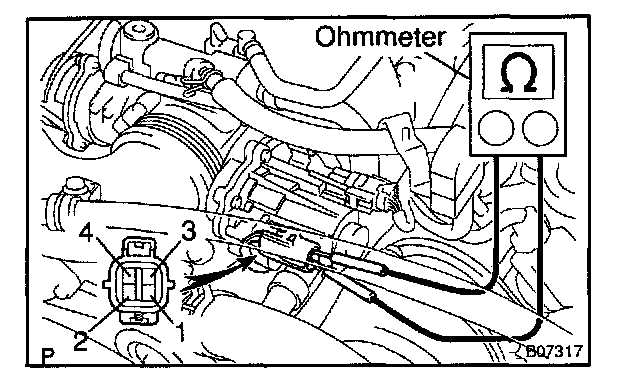 c. Using an ohmmeter, measure the clutch resistance between terminal 3 (CL-) and 4 (CL+).