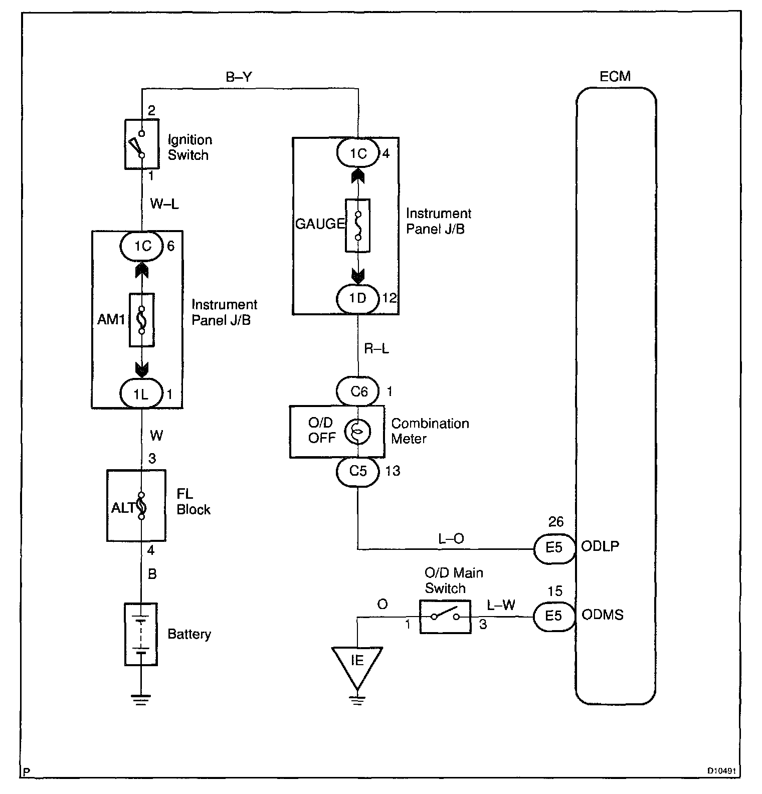 O/D Main Switch & O/D OFF Indicator Light Circuit